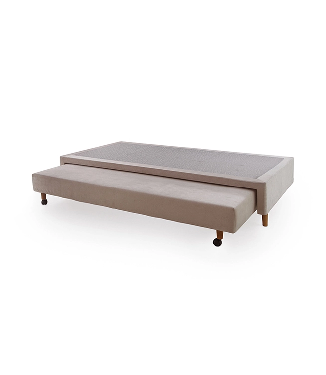 Essa bela Base Box Teen possui pés fixos, tratamento antialérgico e antiácaro para preservar o bem-estar do seu usufruidor, capacidade para suportar até 150 Kg e ainda acompanha uma cama auxiliar confortável em espuma de densidade média.