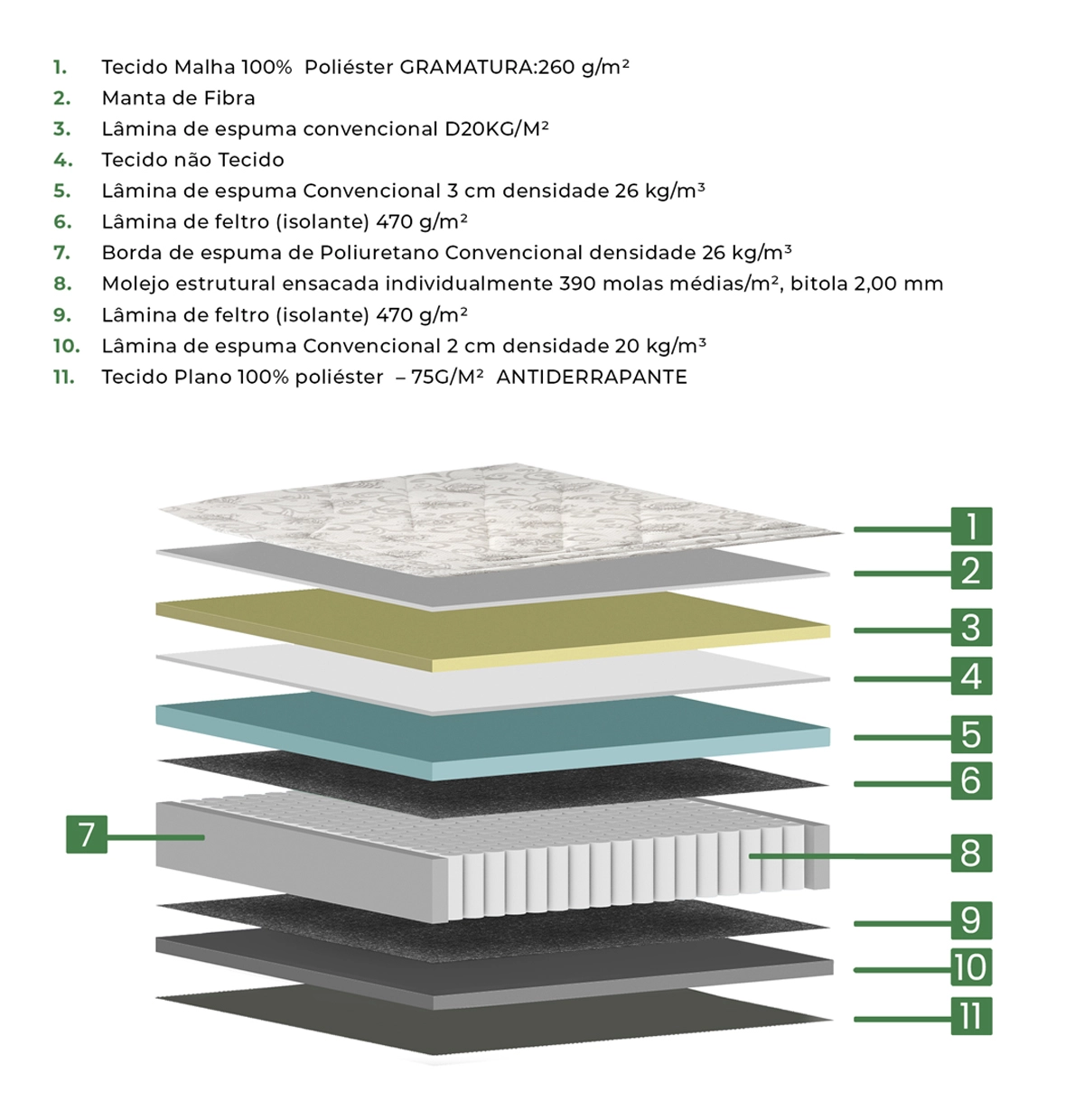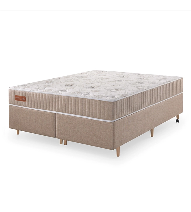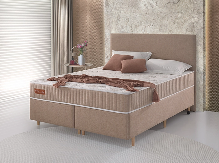 Entre linhas de sutileza, emerge o encanto deste conjunto onde o clássico abraça o contemporâneo. Sua cabeceira capitonê evoca tempos passados com um toque de elegância atemporal, enquanto o design minimalista da cama e do colchão celebra a simplicidade sem concessões ao conforto.